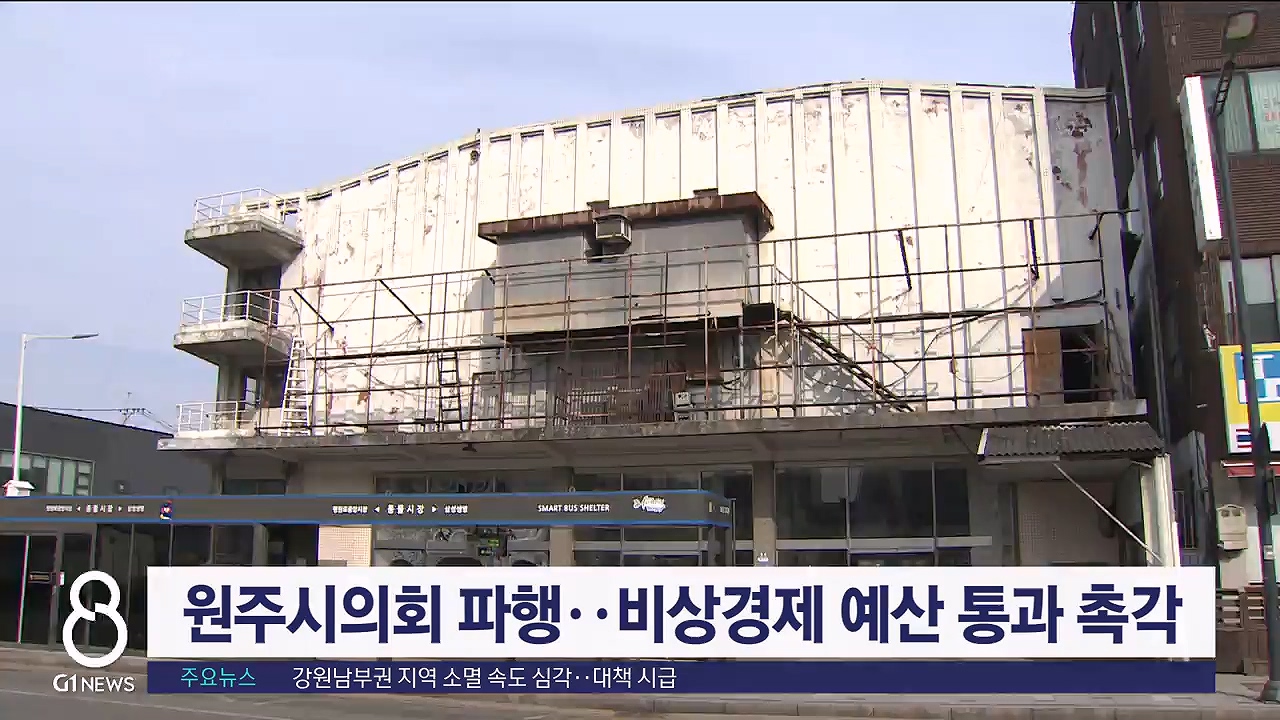 원주 아카데미극장 철거 예산안을 둘러싼 원주시의회 의사일정 파행이 장기화되면서 원주시가 서민경제 활성화를 위한 비상경제 예산안 통과를 촉구하고 나섰습니다.