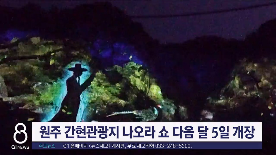 원주의 대표 관광지인 간현관광지의 야간 볼거리인 나오라 쇼가 다음 달 5일 개장합니다.