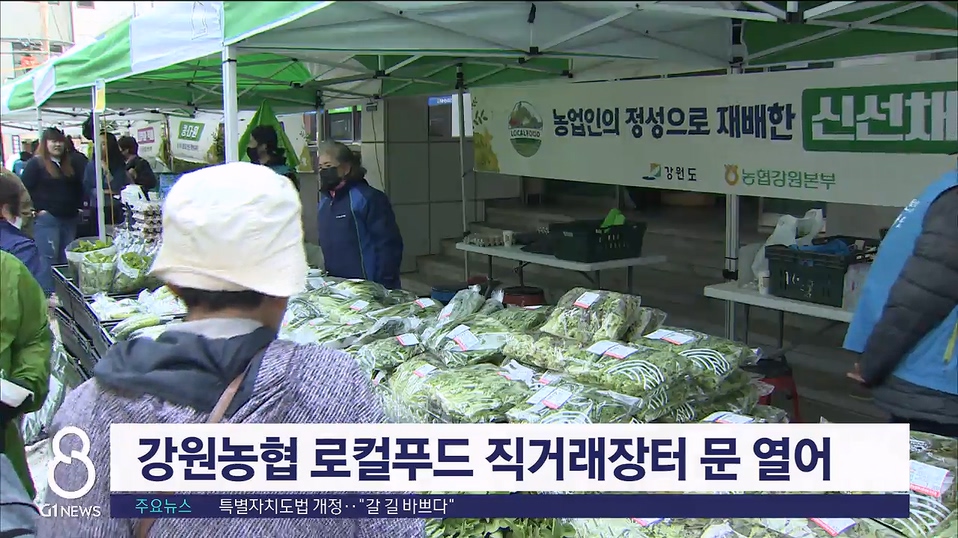 로컬푸드 직거래장터는 매주 목요일 지역본부 앞에서 운영하는 상시장터 22회와 강원도청·강원경찰청 등 유관기관을 찾아가는 특별장터 2회 등 모두 24회에 걸쳐 열릴 예정입니다.