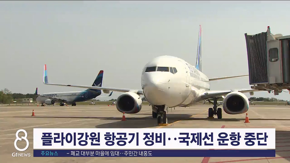 플라이강원은 정비로 인한 항공기 부족으로 국내선인 제주 노선을 제외한 모든 국제선 운항을 다음달 말까지 중단한다고 밝혔습니다.