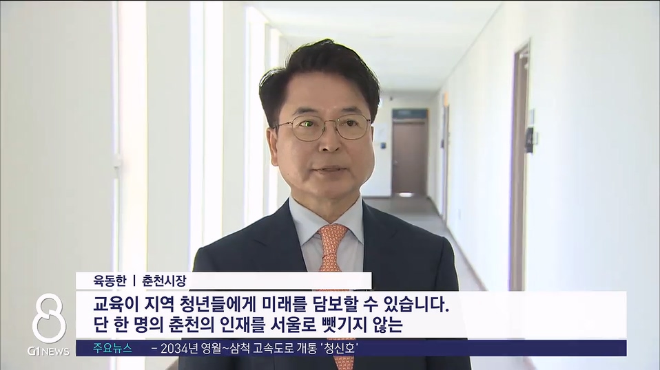 "교육이 지역 청년들에게 미래를 담보할 수 있습니다. 단 한 명의 춘천의 인재를 서울로 뺏기지 않는 그런 각오로 춘천을 최고의 교육도시로 만들기 위해서 매진하고 있습니다."