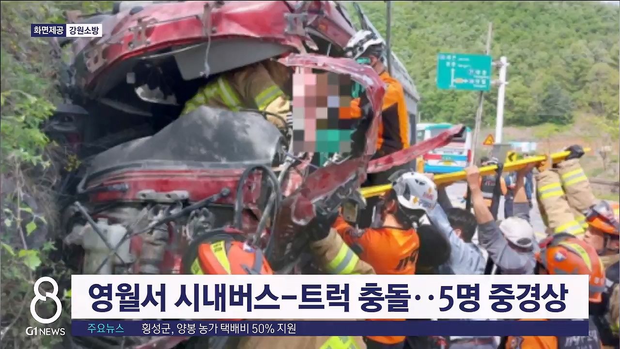 영월서 시내버스-트럭 충돌..5명 중경상