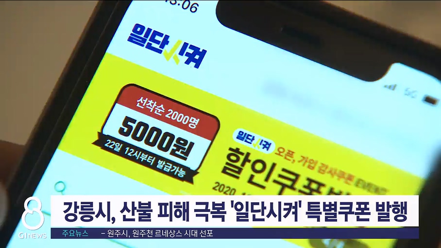 강릉시가 산불 극복과 지역 경제 활성화를 위한 공공 배달앱 특별 쿠폰을 발행합니다.