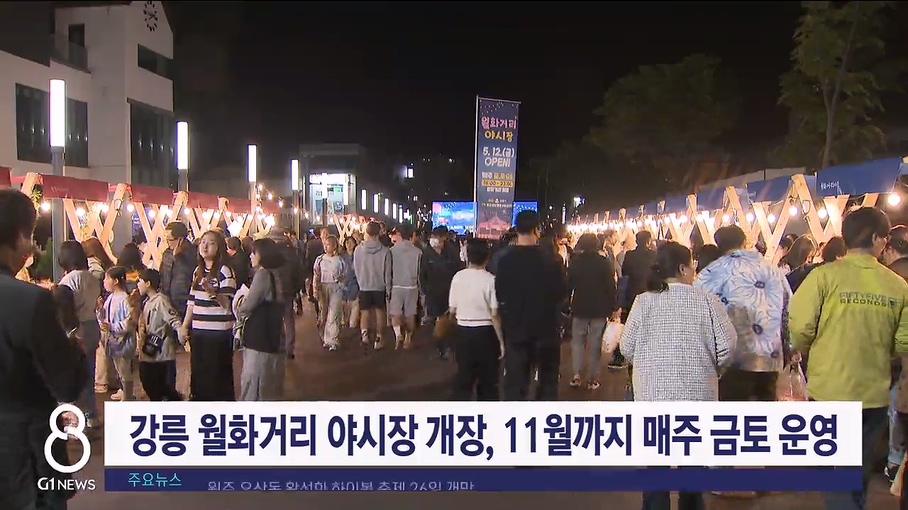 오는 11월까지 매주 금·토요일 오후 6시부터 11시까지 운영되는 강릉 월화거리야시장에서는 다양한 지역 먹거리와 플리마켓, 각종 공연이 펼쳐질 예정입니다.