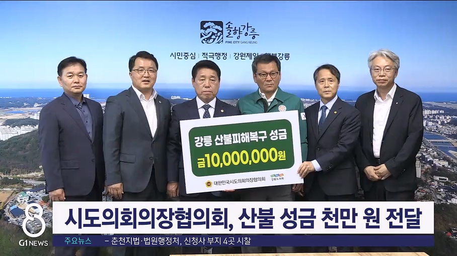 대한민국 시도의회의장협의회가 강릉 산불 피해 복구를 위한 성금 1,000만 원을 강릉시에 전달했습니다.