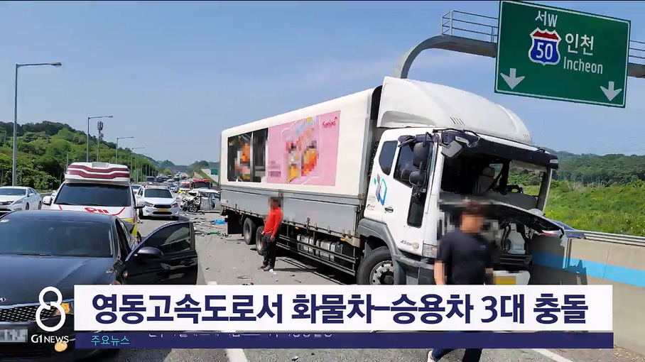 오늘 오전 9시 36분쯤 원주시 가현동 인근 영동고속도로 강릉방향에서 8.5t 트럭과 승용차 3대가 충돌했습니다.