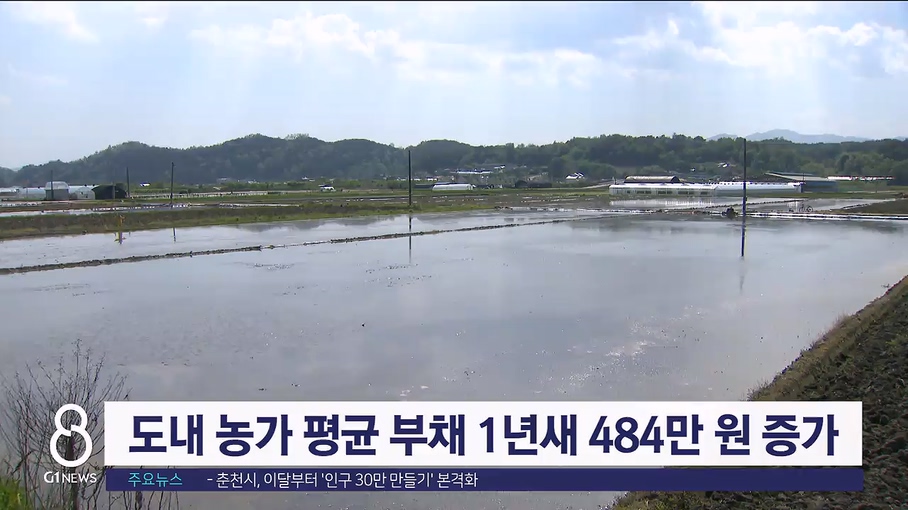 지난해 도내 농가 평균 부채는 3천 773만 원으로 전년 대비 14.7%인 484만 원 증가했습니다.