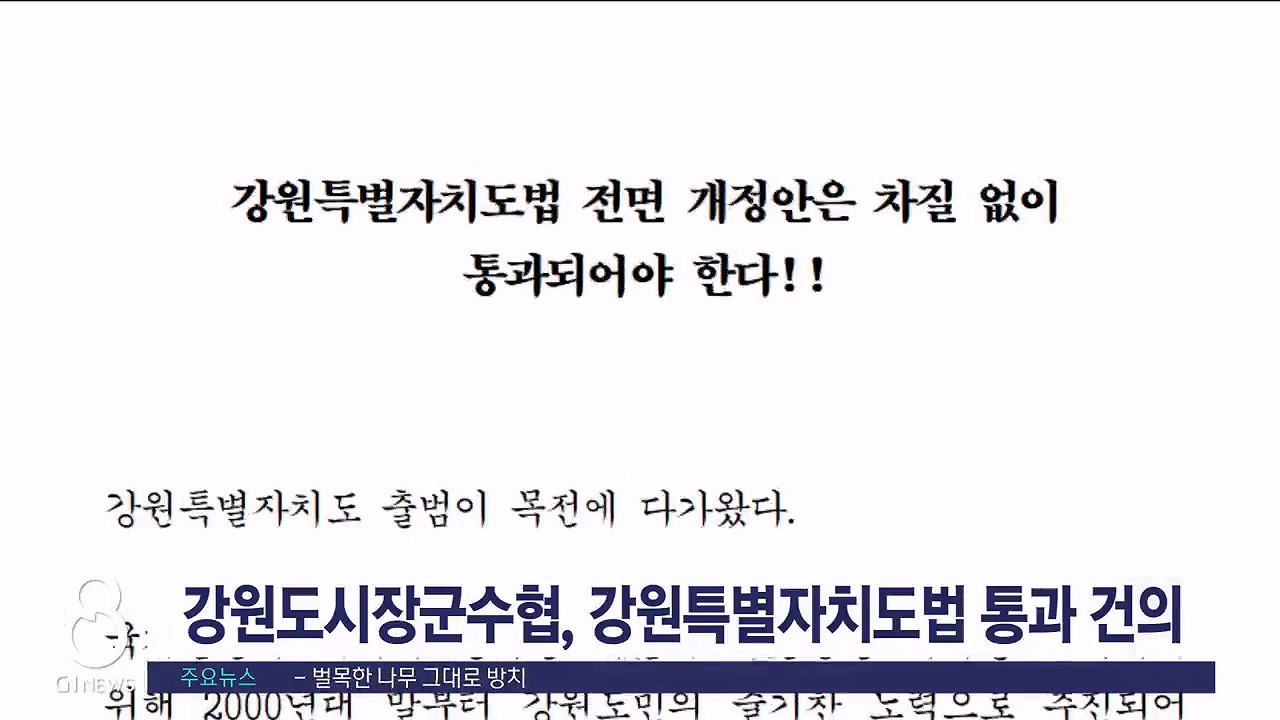 또, 분단 후 중복 규제의 아픔을 감내해 온 강원도민의 희생을 감안하면 너무나 당혹스러운 현실인 만큼 국회가 개정안의 차질없는 통과를 위해 적극 나설 것을 촉구했습니다.