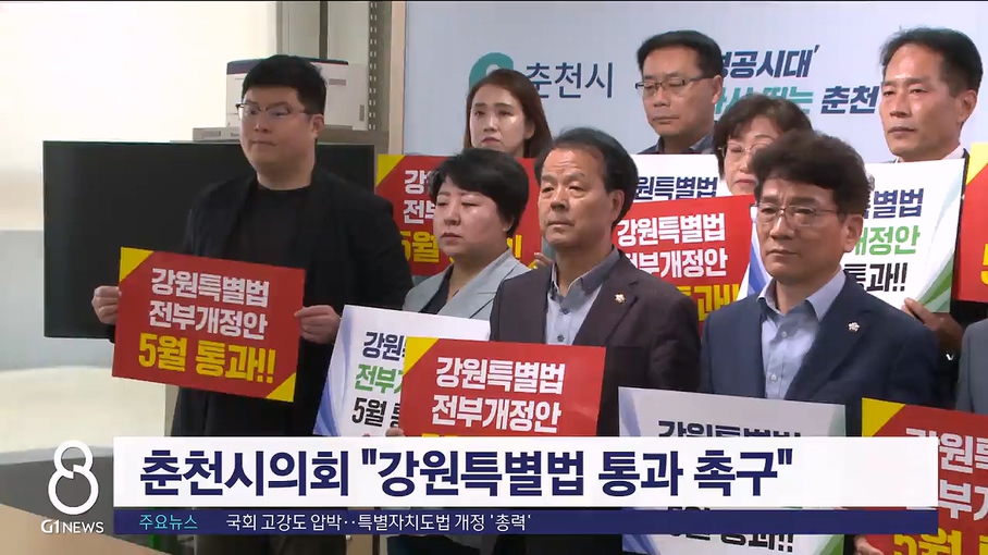 국민의힘과 더불어민주당 소속 춘천시의원들이 강원특별자치도법 전부 개정안의 조속한 국회 통과를 촉구했습니다.