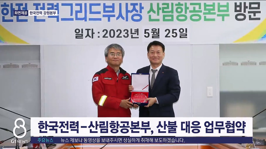 최근 3년간 도내에서 대형산불이 계속해서 발생하는 가운데, 한국전력 강원본부와 산림항공본부가 산불로부터 산림자원과 기반시설 보호를 위한 업무협약을 맺었습니다.