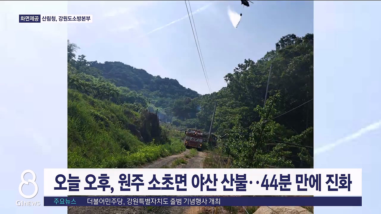 오늘 오후 3시 6분쯤 원주시 소초면의 한 야산에서 불이 났습니다.