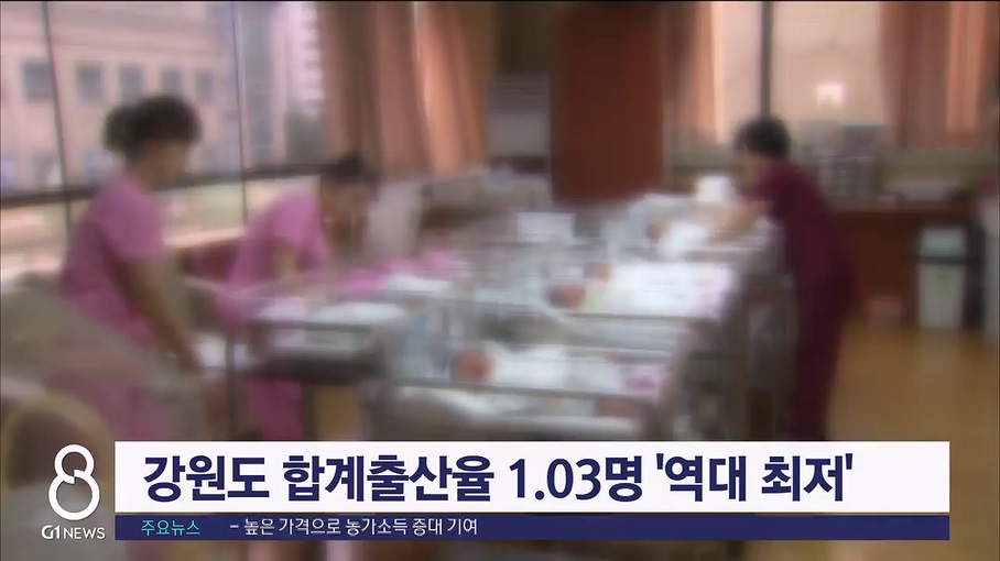 올해 1분기 강원도 합계출산율이 역대 1분기 기준 최저치를 기록했습니다.