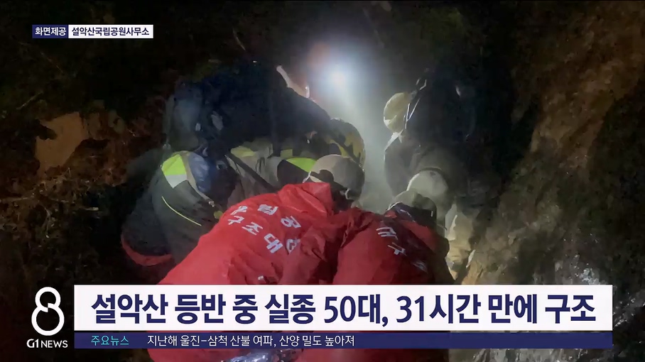 설악산 등반 중 실종 50대, 31시간 만에 구조