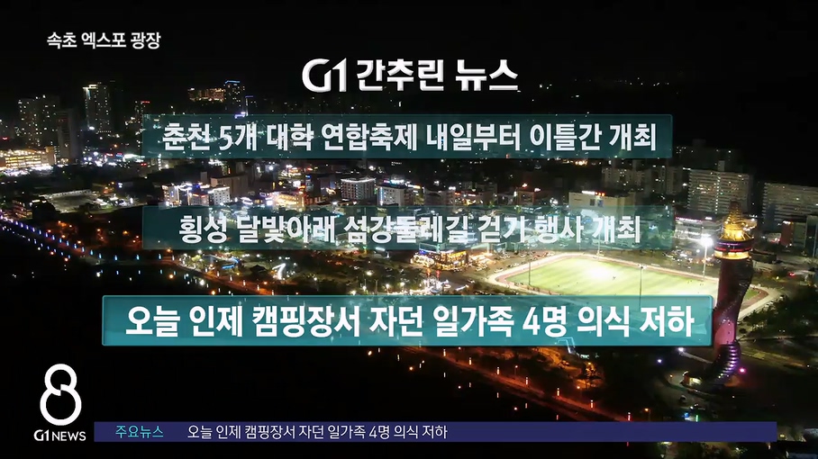 오늘 오전 4시 19분쯤 인제군 상남면의 한 캠핑장 텐트에서 잠을 자던 일가족 4명이 일산화탄소 중독으로 추정되는 의식 저하로 병원에 옮겨졌습니다.