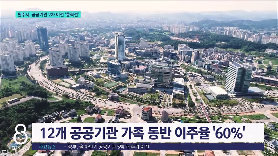 원주 혁신도시 12개 공공기관의 가족동반 이주율은 60%.