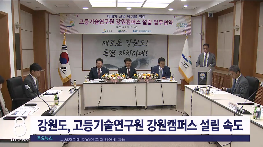 김진태 강원도지사와 원강수 원주시장, 김진균 고등기술연구원장은 오늘(2일) 강원도청에서 고등기술연구원 강원캠퍼스 설립 업무협약을 체결했습니다.
