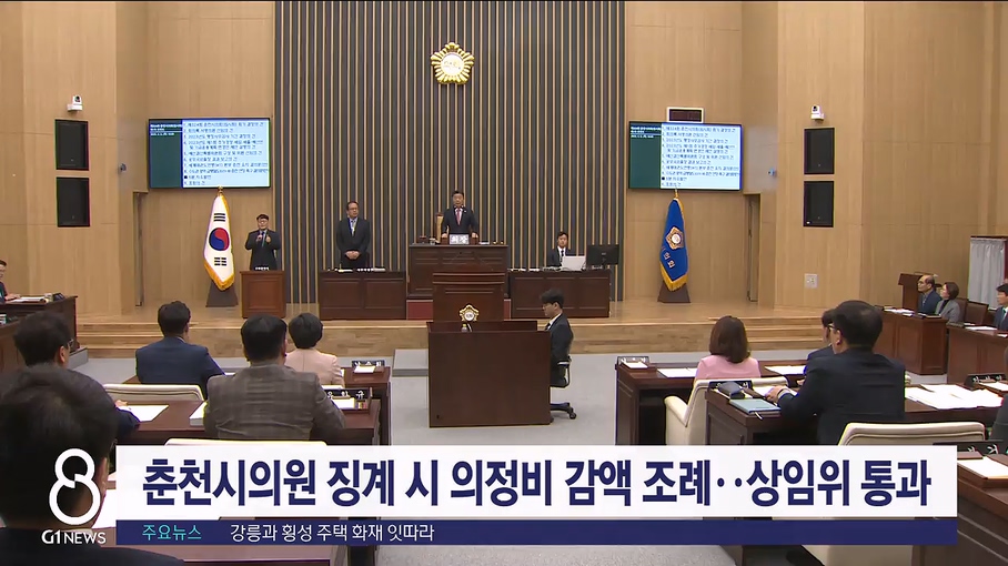 시의원이 출석정지 이상의 징계를 받을 경우 의정비 지급을 제한하는, '춘천시의회 의원 의정활동비 등 지급에 관한 조례 일부개정안'이 상임위원회에서 수정 가결됐습니다.