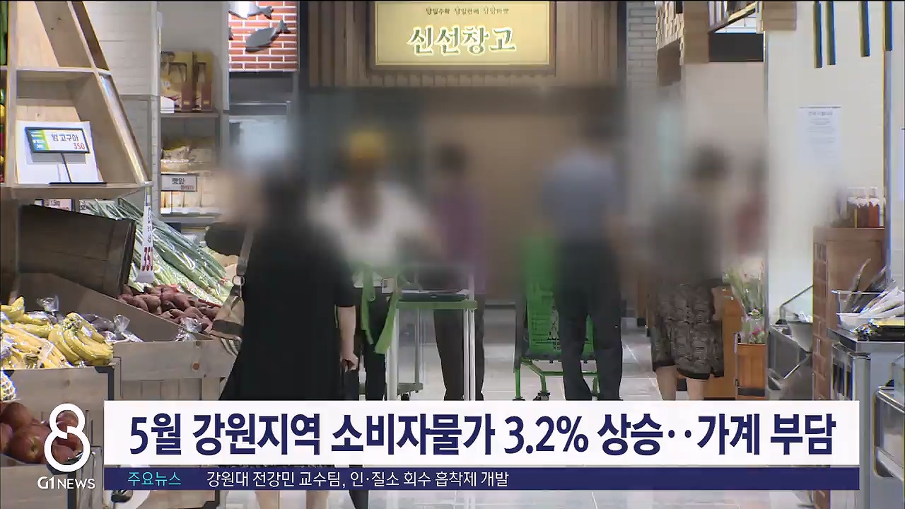 5월 강원도 소비자물가 상승률이 3.2%를 기록하는 등 가계 부담이 늘어난 것으로 나타났습니다.