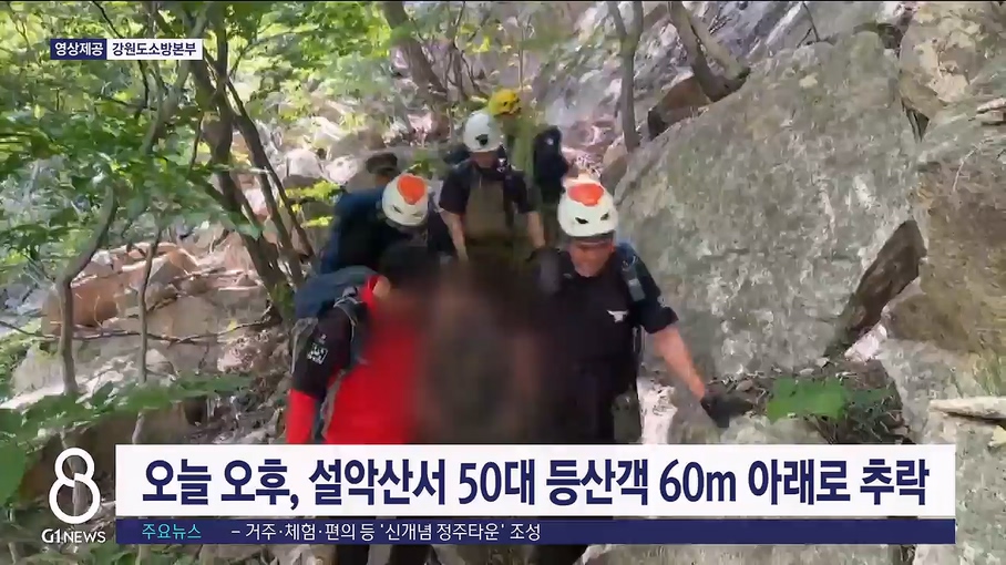 오늘 오후 1시 43분쯤 속초시 설악동 장군봉 인근에서 등반 중이던 50대 여성 A씨가 60m 아래로 추락했습니다.