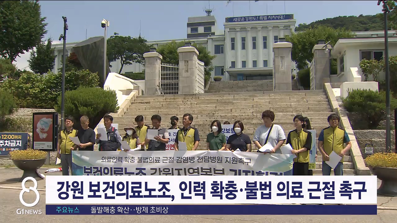 보건의료노조 강원지역본부가 오늘(7일) 강원도청 앞에서 기자회견을 열고, 의료인력 확충과 불법의료 근절 등을 촉구했습니다.