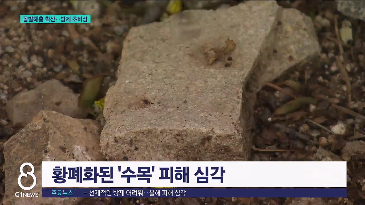 지난겨울과 올봄 유난히 포근한 날씨가 이어지면서 올해 돌발해충 피해가 더 확산할 것이란 우려가 현실화되고 있습니다.