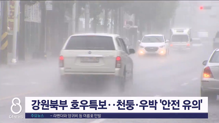 강원북부 호우 특보..천둥·우박 '안전 유의'