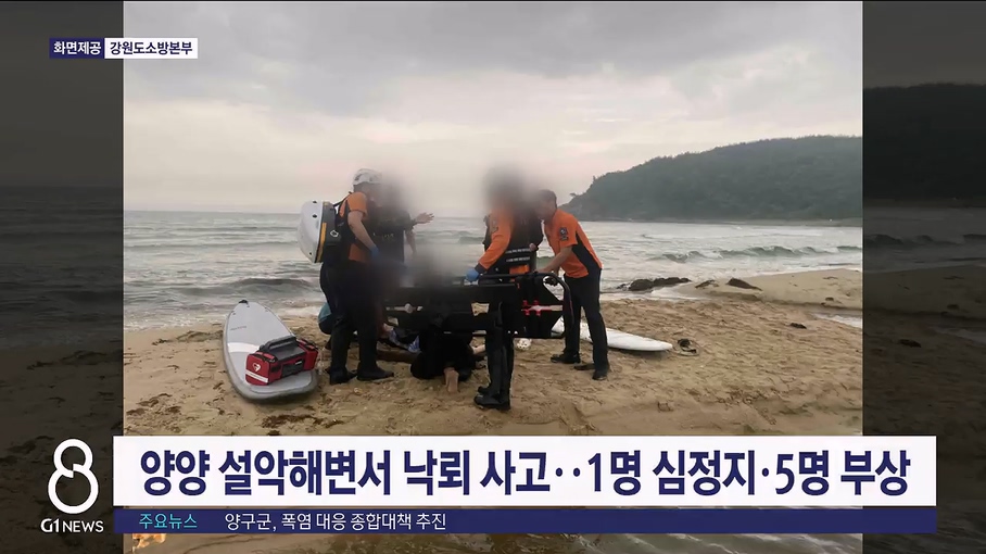 이 중 남성 1명은 심정지 상태로 병원으로 옮겨진 후 현재는 자발순환이 회복된 상태며, 5명은 강릉아산병원 등으로 이송돼 치료 중입니다.