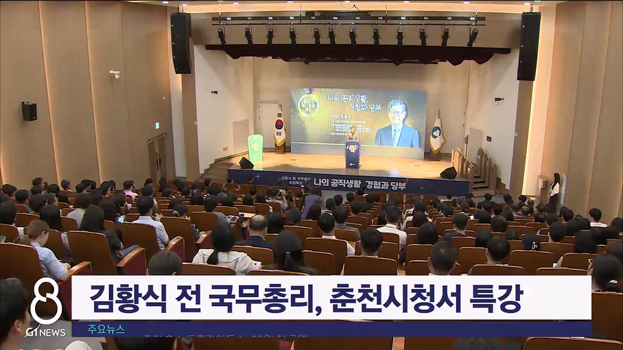 김황식 전 국무총리가 오늘(12일) 춘천시청 대회의실에서 시청 직원 등 300여 명을 대상으로 특강 시간을 가졌습니다.