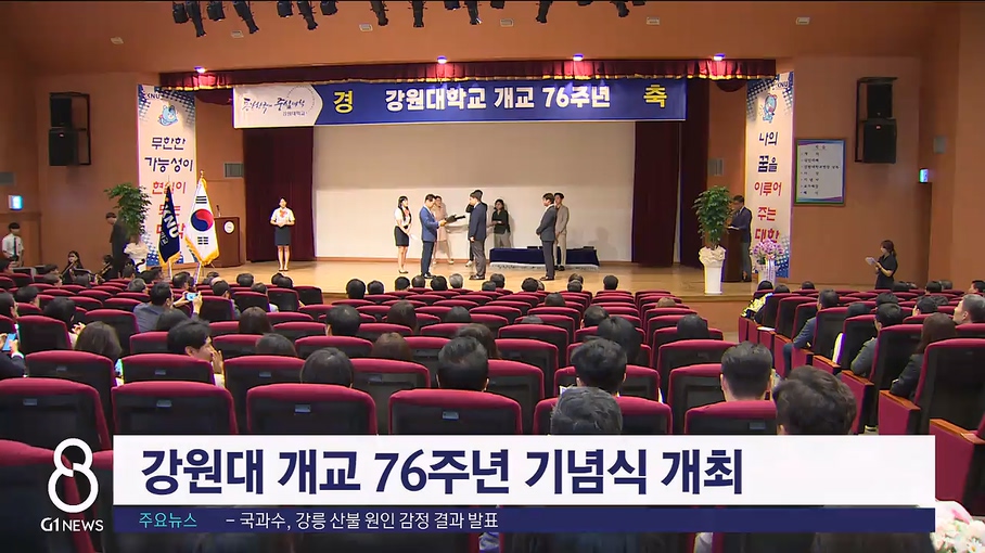 강원대학교 개교 76주년 기념식이 춘천캠퍼스 실사구시관에서 개최됐습니다.