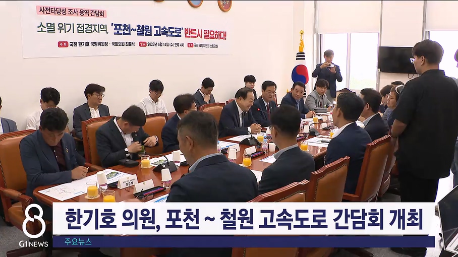 국민의힘 한기호 의원은 오늘(14일) 국회에서 국토부와 강원도, 경기도, 철원군 관계자들이 참석한 가운데 포천~철원 고속도로 사전타당성 조사 용역 간담회를 개최했습니다.