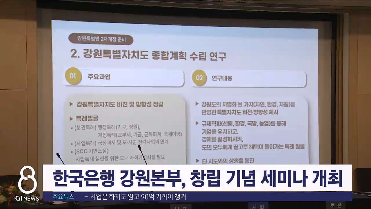 이번 세미나에서는 '특별자치도 출범과 강원경제 성장전략'을 주제로 강원특별자치도의 비전과 성과, 과제 등이 발표됐습니다.