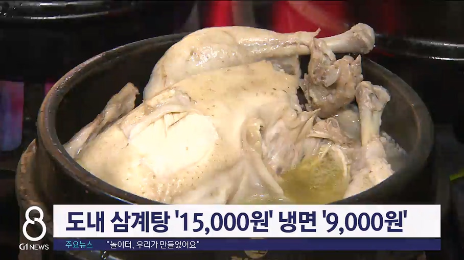 도내 삼계탕 '15,000원', 냉면 '9,000원'