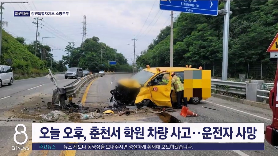 오늘 오후, 춘천서 학원 차량 사고..운전자 사망