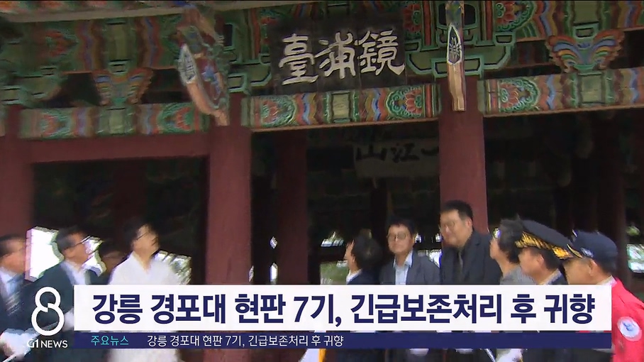 지난 4월에 발생한 산불로 인근 오죽헌박물관으로 이송됐던 강릉 경포대 현판 7기가 제자리로 돌아왔습니다.