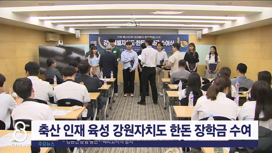 강원인재육성 평생교육진흥원은 오늘(22일) 원주 돼지문화원에서 대한한돈협회 강원도협의회와 함께 미래 축산 인재들에게 '강원특별자치도 한돈 장학금'을 수여했습니다.