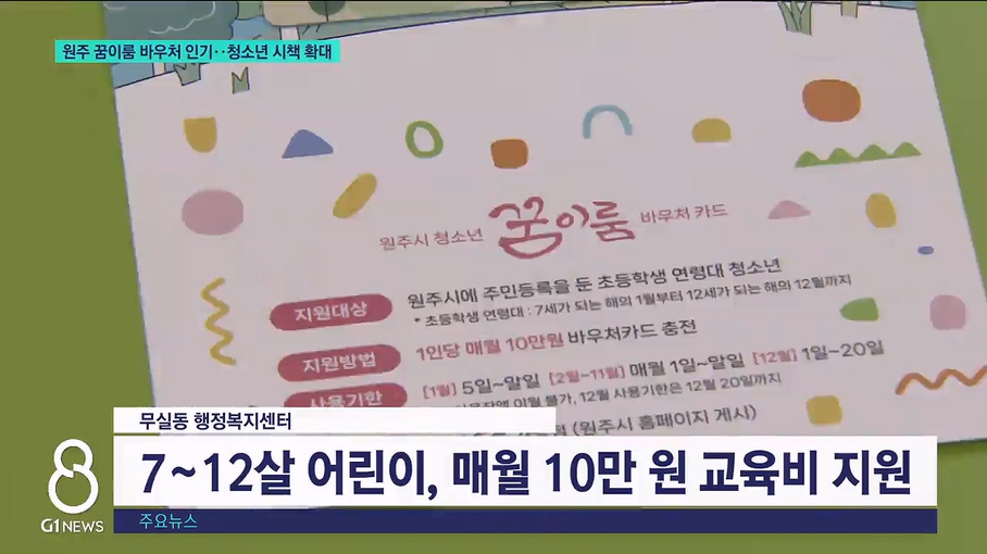 G1방송에서는 지난주 원주시가 초등생에게 전국 처음으로 매월 10만 원의 교육비를 지원한다는 소식 전해드렸는데요.