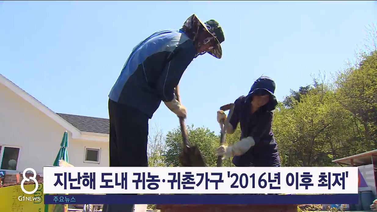 지난해 강원자치도로 귀농·귀촌해 전입한 가구 수가 2016년 이후 최저치를 기록했습니다.