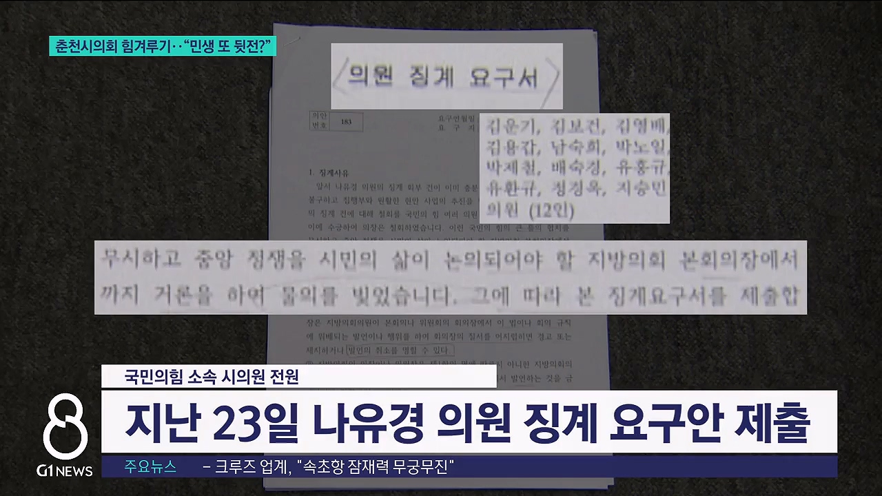 지난 23일 국민의힘 소속 춘천시의원 전원이 참여한 '더불어민주당 나유경 의원 징계 요구서'입니다.