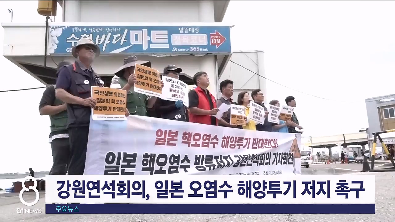 민주주의와 민생, 사회공공성 실현을 위한 강원연석회의는 '일본 정부의 원전 오염수 방류 강행은 우리 수산업과 관광업 등에 돌이킬 수 없는 피해를 가져올 것'이라고 주장했습니다.