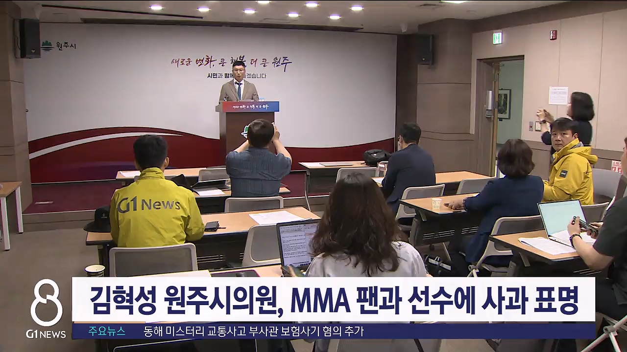 원주시의회 정례회 행정 사무감사 중 MMA는 스포츠가 아니다라는 발언을 통해 논란을 빚었던 김혁성 원주시의원이 MMA 팬과 선수들에게 사과를 표명했습니다.