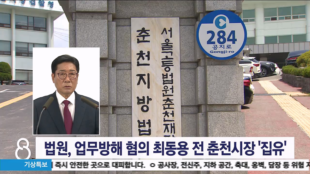 법조계에 따르면, 춘천지법은 업무방해 혐의로 기소된 최 전 시장에게 징역 10개월에 집행유예 2년을 선고했습니다.
