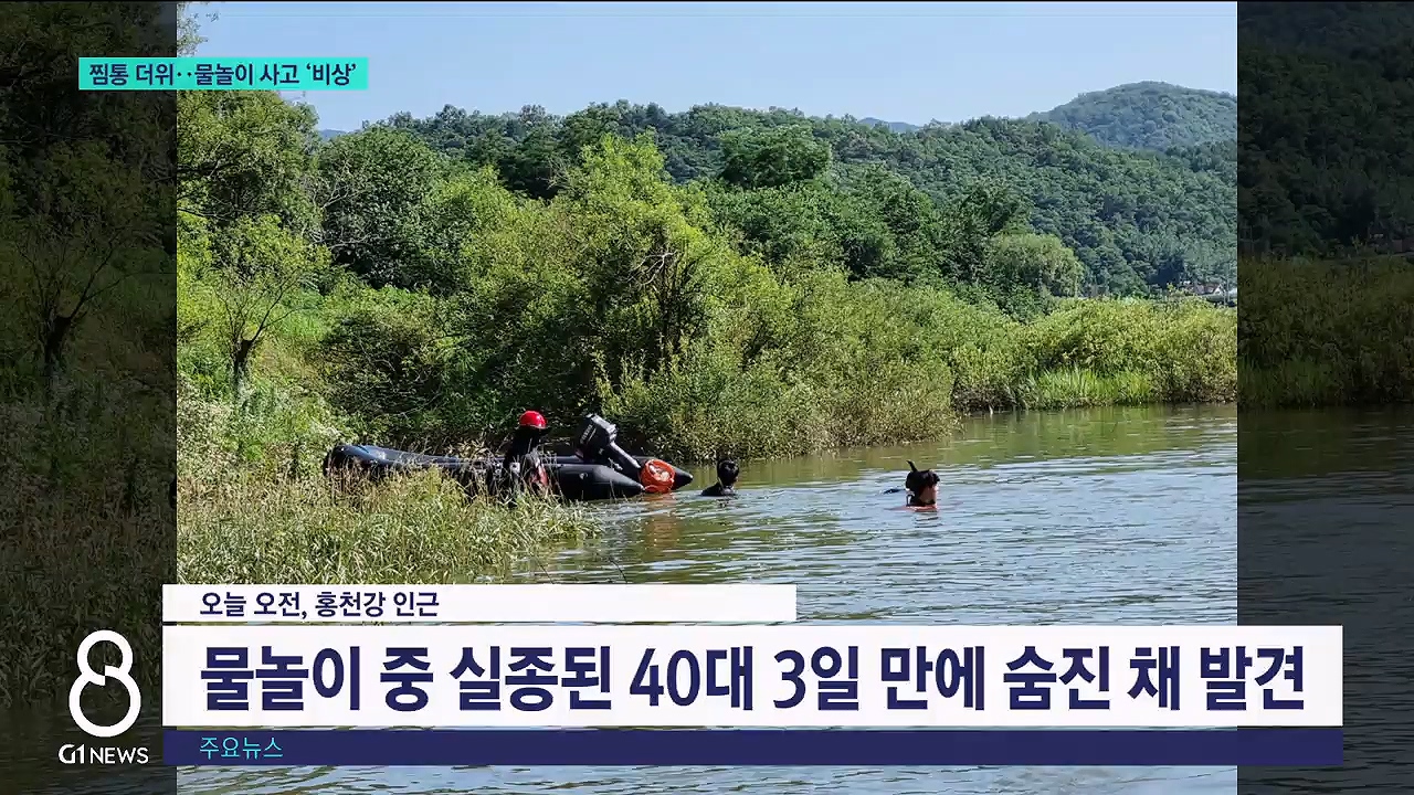 지난 주말 홍천강에서 물놀이를 하다가 실종된 40대 여성 A씨가 수색 사흘 만에 숨진 채 발견됐습니다.