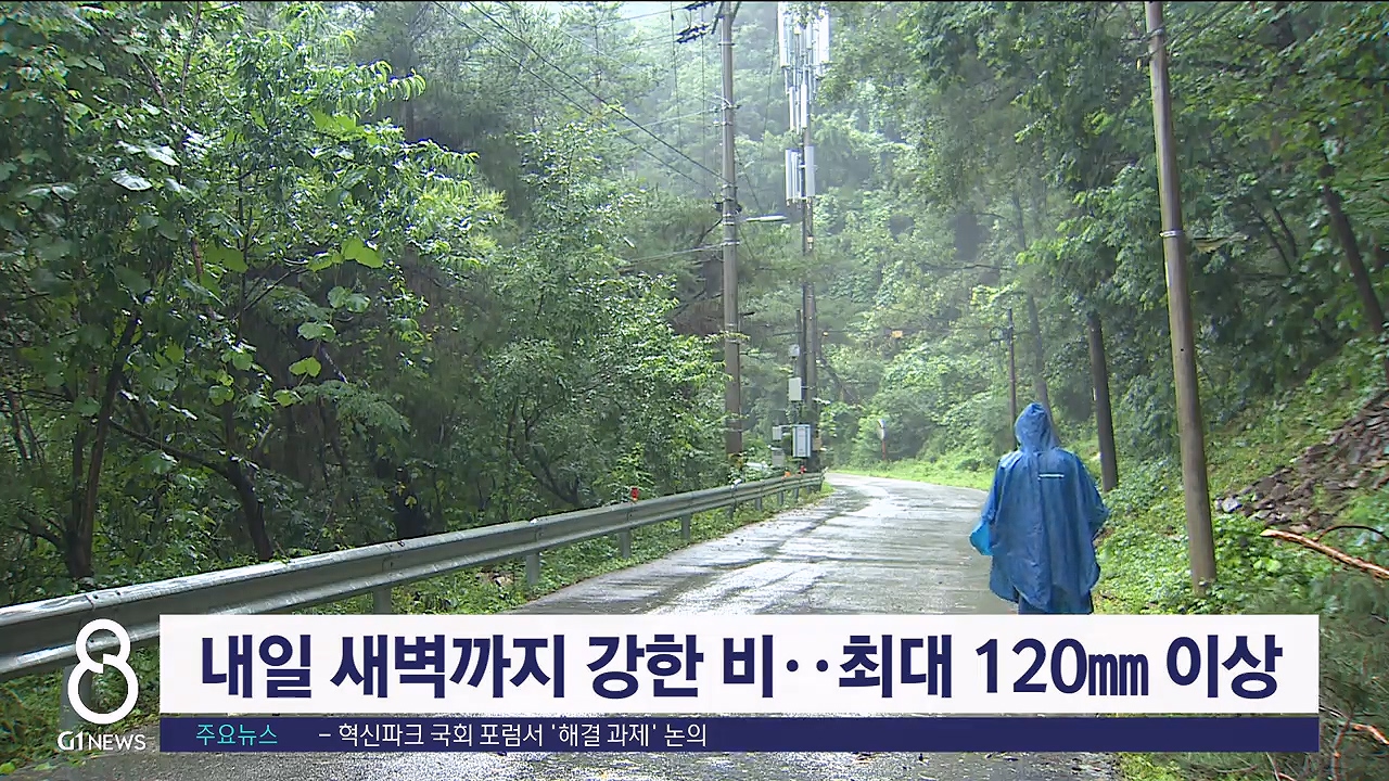 강원지방기상청은 오늘 밤과 내일 새벽 매우 강한 비가 내리겠다며, 안전사고와 시설물 관리에 유의할 것을 당부했습니다.