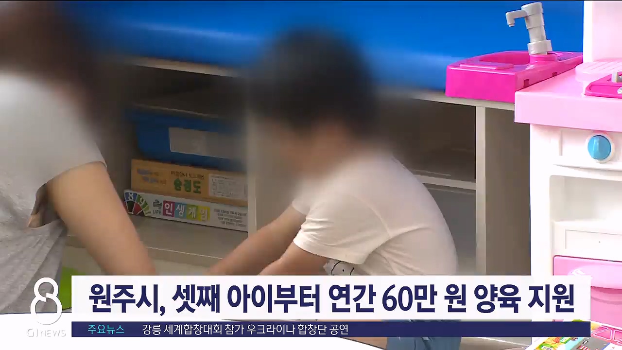 원주시가 다자녀 가정의 양육 부담 해소를 위해 셋째 아이부터 연간 60만 원의 양육비를 지원합니다.