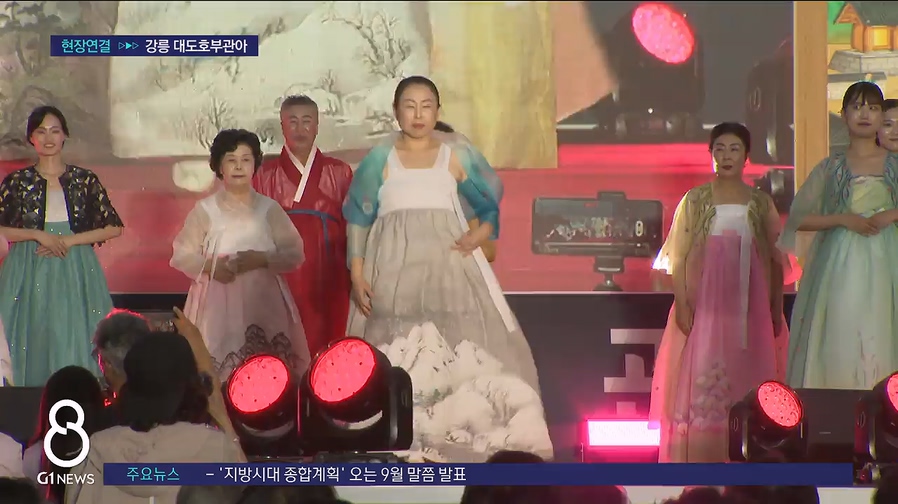 행사기간 강릉문화재 야행 대표 프로그램으로 꼽히는 '오색달빛 한복 패션쇼'에서는 50여 명의 강릉시민들이 아름다운 한복의 자태를 뽐냈습니다.