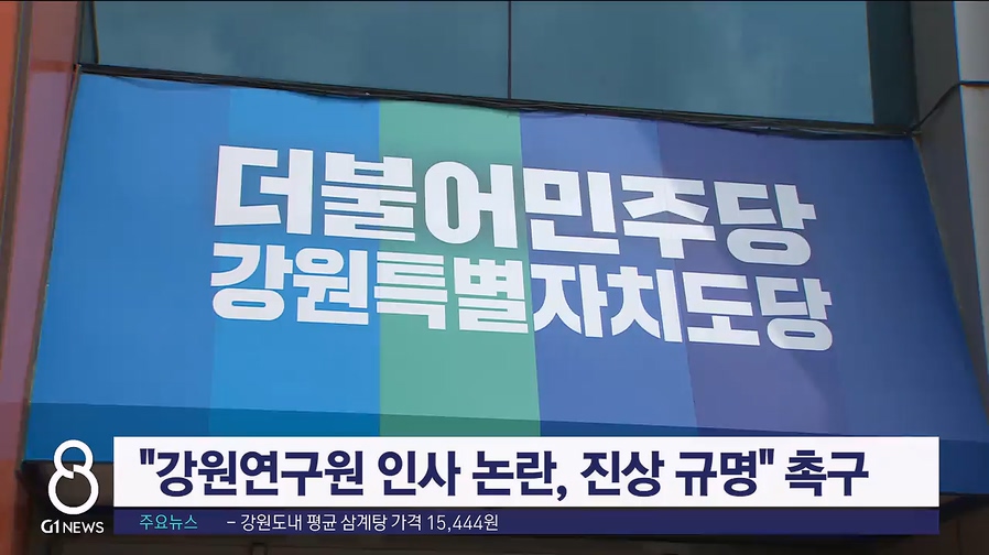 G1 방송이 지난주 보도한 '강원연구원 승진인사 논란'과 관련해 도내 주요 정당이 논평을 내고 공정하고 신속한 조사를 촉구했습니다.