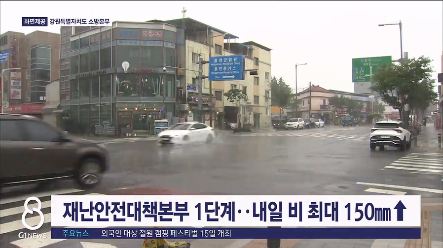 강원기상청은 내일도 영동지역에 5에서 60mm, 영서지역은 30에서 100mm의 비가 더 내리겠으며, 많은 곳은 150mm 이상의 비가 오는 곳도 있겠다며, 시설물 관리에 주의를 당부했습니다.