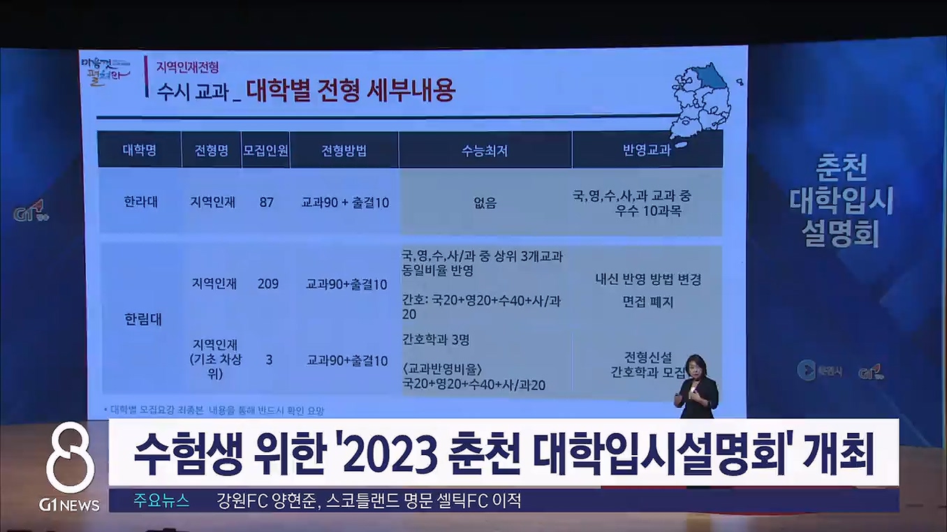 춘천시가 주최하고 강원특별자치도교육청과 G1방송이 주관한 이번 입시설명회에서는,