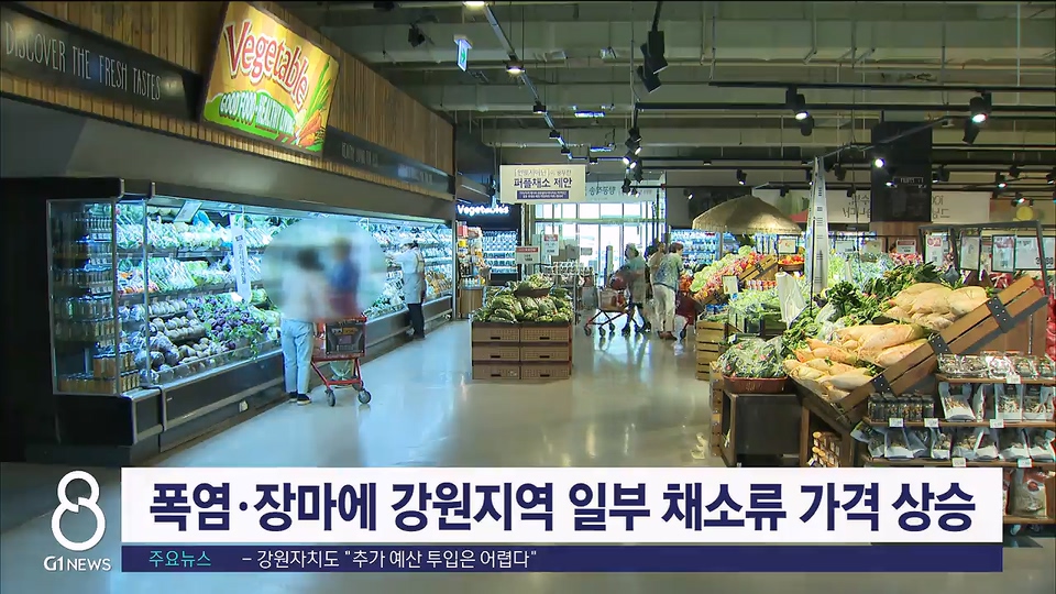 폭염과 장마가 계속되면서 강원지역 밭에서 자라는 채소를 중심으로 가격이 상승하고 있는 것으로 나타났습니다.