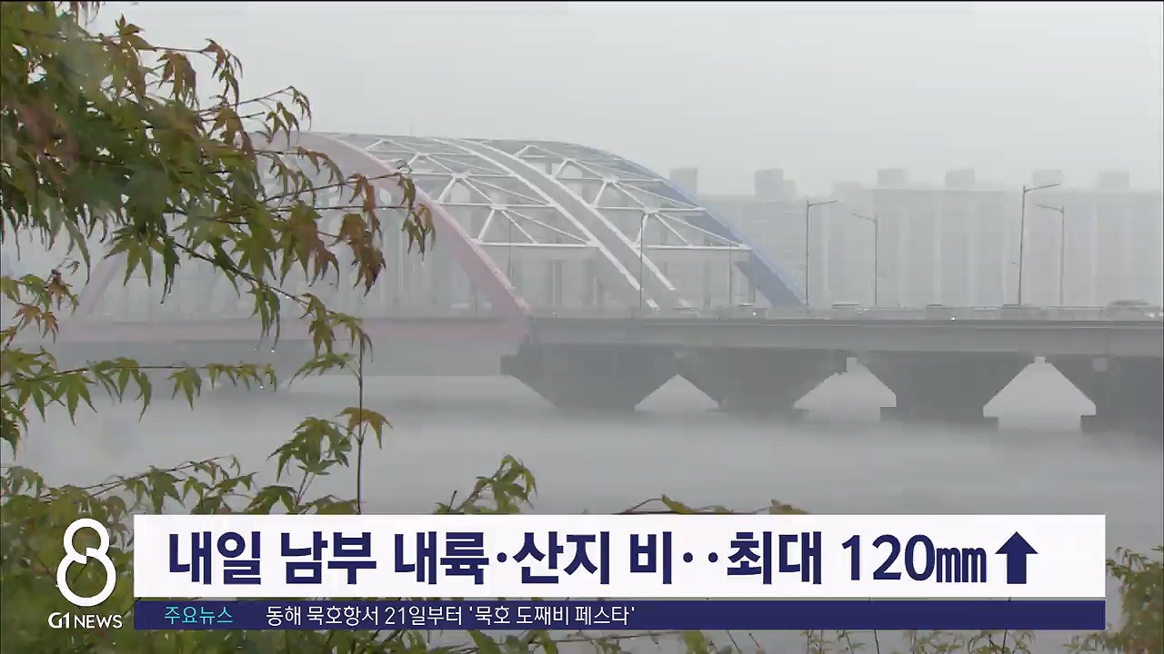 내일 남부 내륙·산지 비‥최대 120mm↑